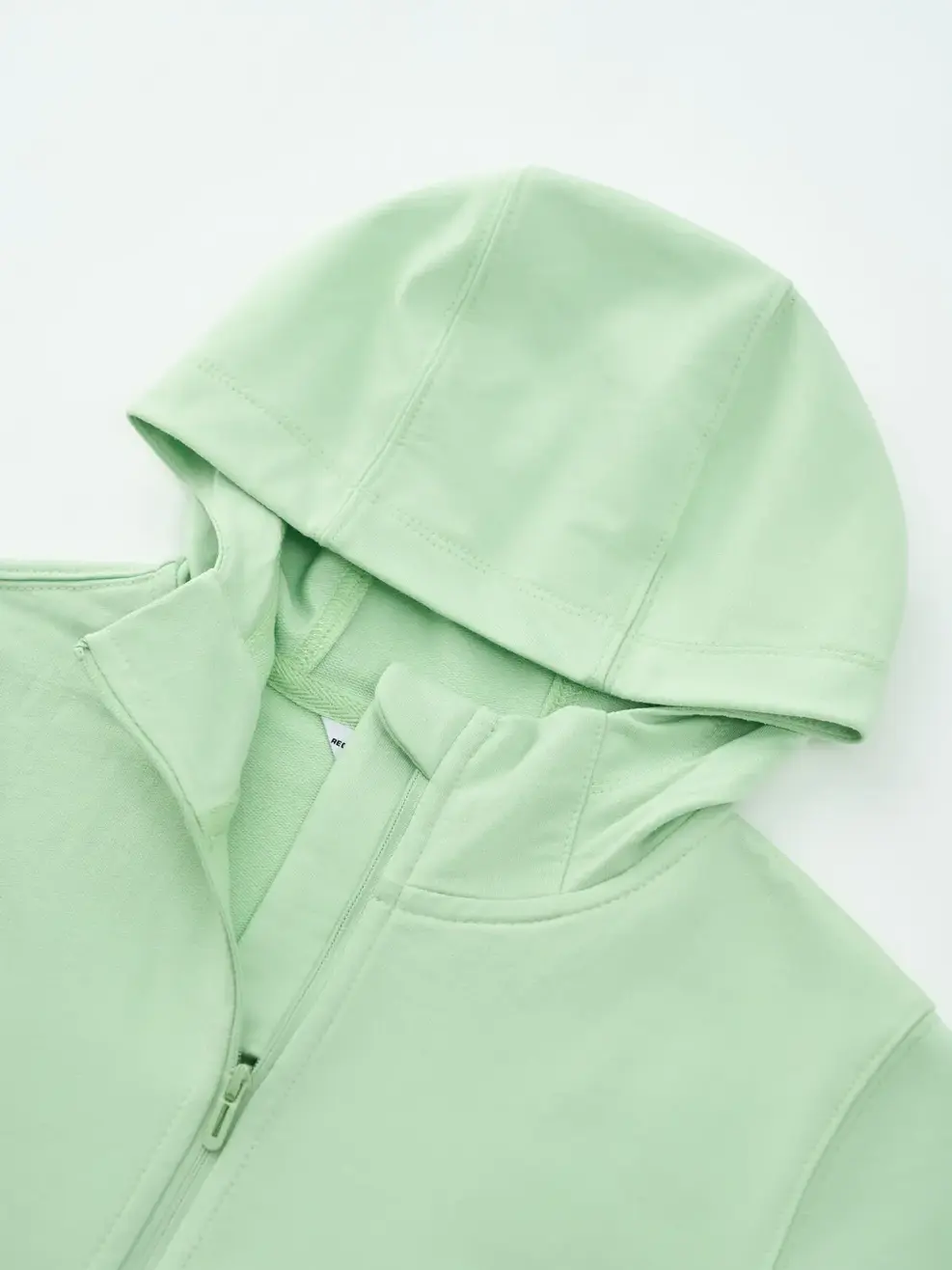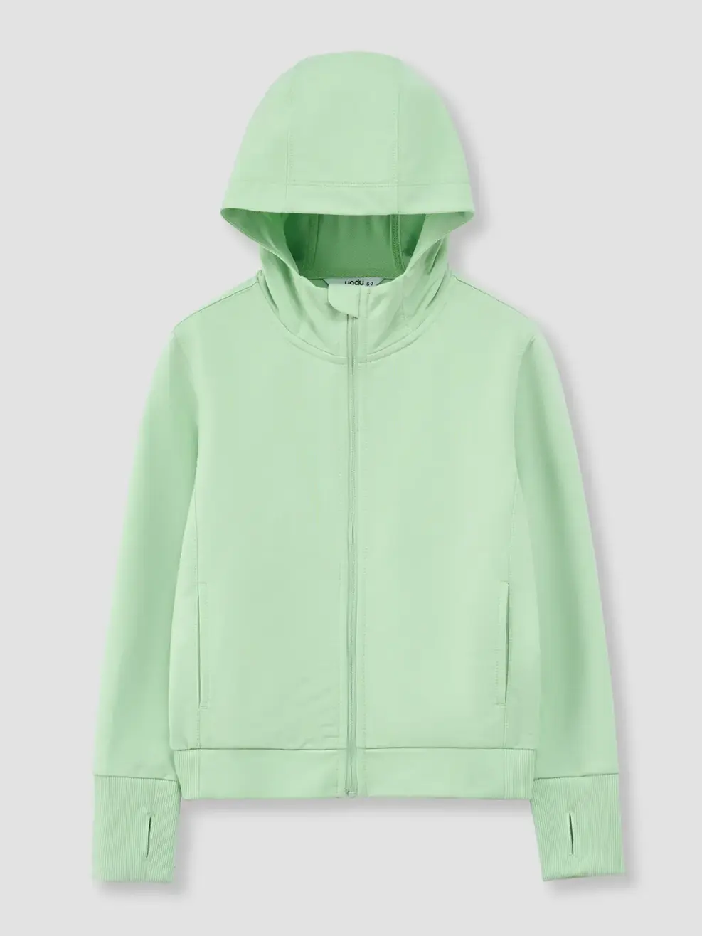 Chống UV hiệu quả: Bề mặt vải ứng dụng công nghệ hoàn tất UV, giúp bảo vệ làn da bé khỏi tác động của ánh nắng mặt trời khi hoạt động ngoài trời.