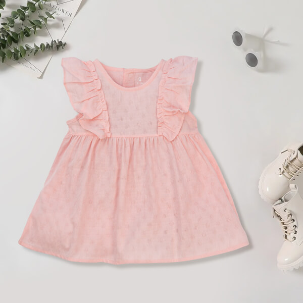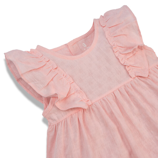 . Thiết kế bèo nhún ở phần thân trên tạo nét nữ tính cho bé gái;